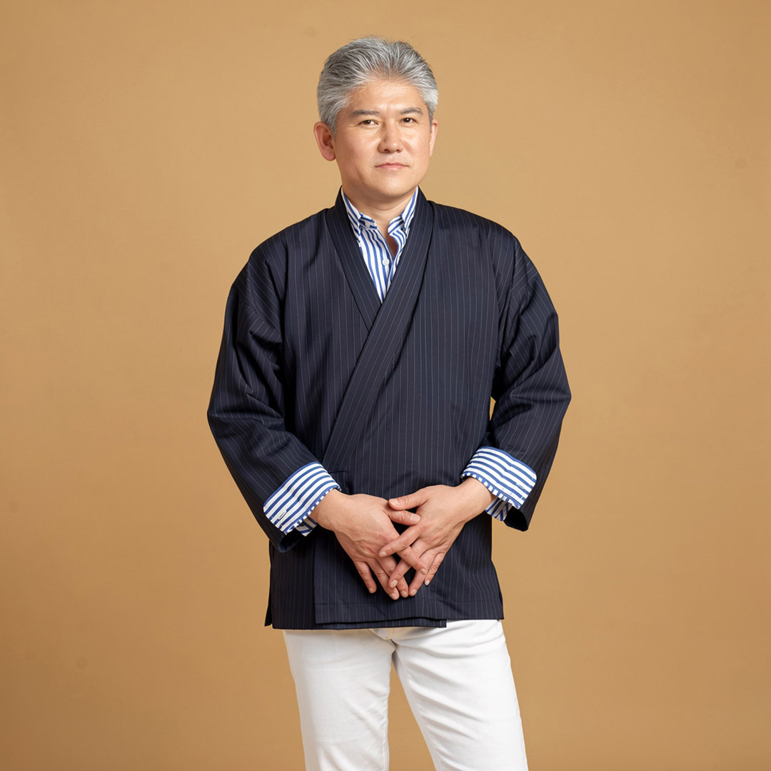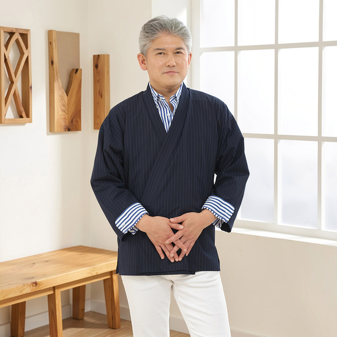 モダンデザイン 作務衣 2026_KA-001 ジャケット風作務衣 ネイビーストライプ